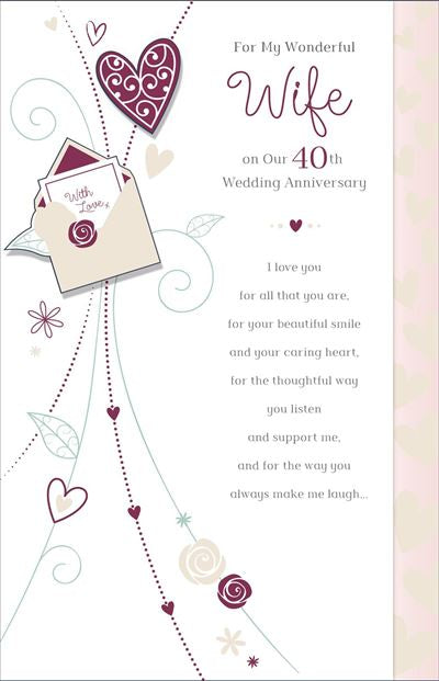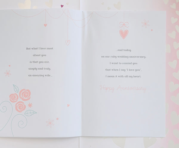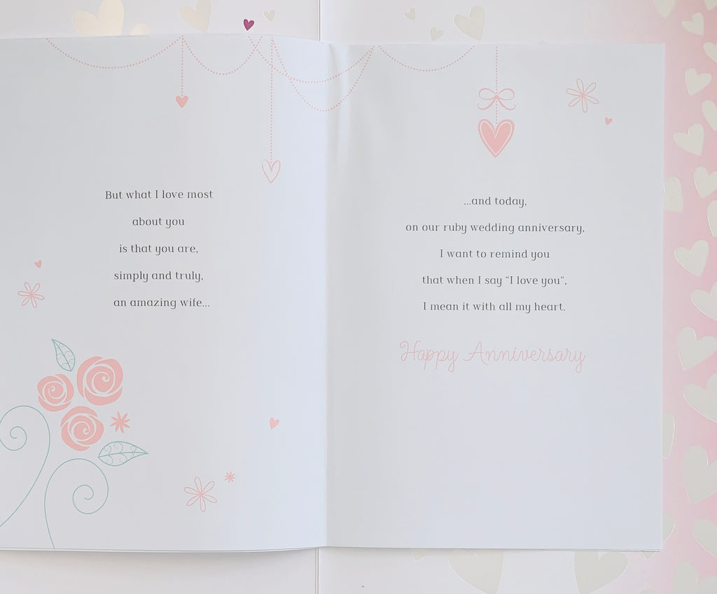 Wife Ruby anniversary card- long verse